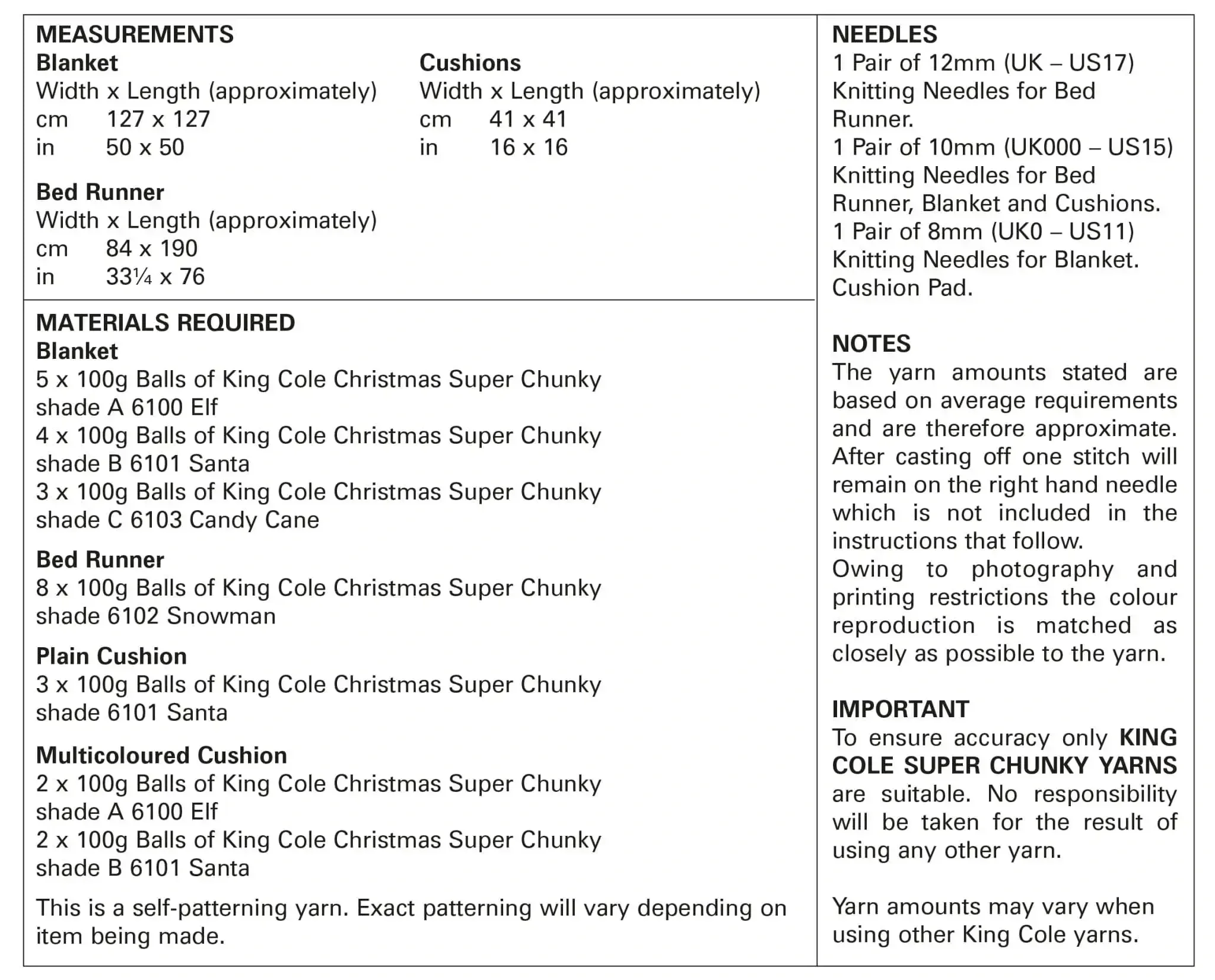 King Cole Christmas Super Chunky Pattern 5782 - Blanket, Bed Runner, Cushion Covers (leaflet)