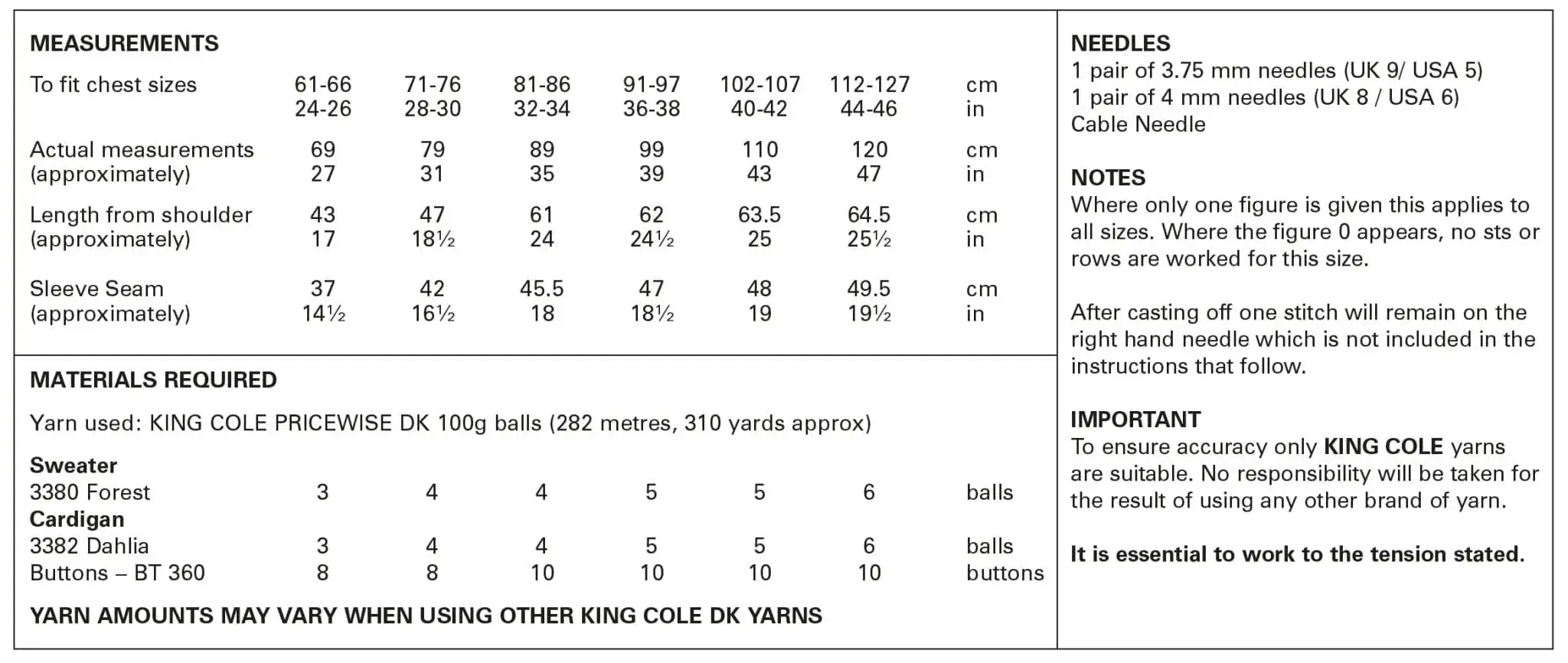 Sweater and Cardigan King Cole Knit Pattern 5938